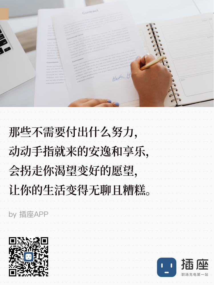 那些不需要付出什么努力,动动手指就来的安逸和享乐,会拐走你渴望变好的愿望,让你的生活变得无聊且糟糕。