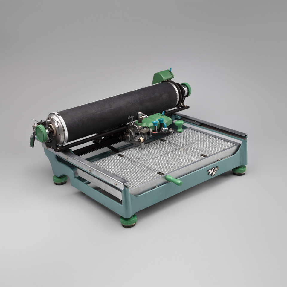 而对于机械时代的中文打字机来说,这样的技术路线则完全行不通,工程师们只能找出中文里最常用的2450个汉字,按照利于查找的原则排列好,传动杆在密密麻麻的字盘上方来回扫荡。打字员每打一句话,就像在地图上寻宝:“只”在字盘的中间,“工”很幸运离“只”不远,“作”却在左上角……如果哪个发疯的作家用中文打字机写作,想必发出的声音就会变成“嘎—哒、嘎—哒……”(“嘎”代表挑中的金属活字被送到卡字杆,撞击滚筒;“哒”则是金属活字被送回字盘的声音。)