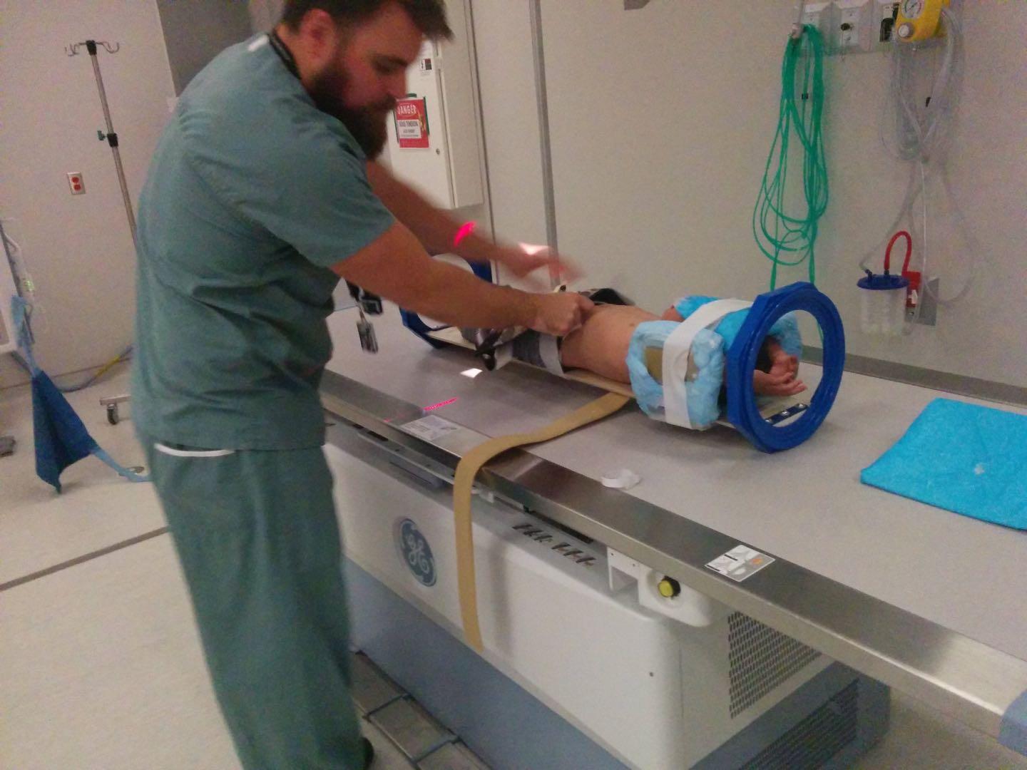 一名男护士引到他们进入一间类似会客室的房间。他再一次详细询问病情,并且告知接下来的步骤。护士态度可亲,一直用各种方法让病人放松。