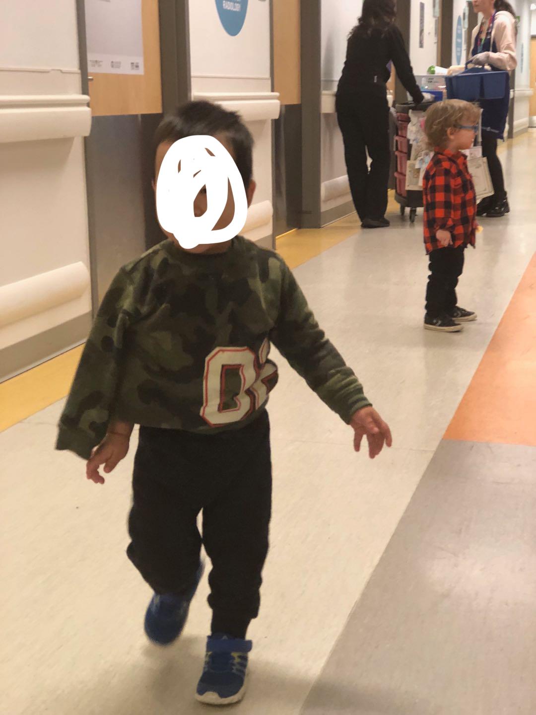半岁的时候,我们发现他的胳膊腿间歇性的会用力发抖,中国北方管这个叫“打狠狠”,尽管听过这种是正常现象,但是临到自己的孩子,总是怕出意外,就去医院看看吧。等我们到了医院急诊,把录的视频他们看完后,立刻让孩子做各种检查,验尿(当时孩子没有尿,最后插尿管引出来),验血,折腾一顿,孩子都哭疯了,然后告诉我们要检查是否有癫痫,立刻给找了间病房住院观察,直到第二天相关领域医生来诊断。同病房有个小孩不知道是什么疾病,每隔几分钟就会抽风一样大声叫,非常恐怖,而他每次叫,都把家孩子吓醒,于是找管理员问能不能换个病房,管理员挺好,把那个小孩转到别处了,整个病房就我们一家三口用,原本每个孩子只能给一个家长陪护的床位,但我老婆语言不太好,如果她自己在这里交流会有问题,于是就又给我临时加了个床。整整煎熬了一宿,期间护士每隔一段时间来观察一次,肛门量体温,直到第二天上午,医生终于来了,非常的和蔼,问了一些基本的问题,然后告诉我们基本不可能有其他疾病,但还是建议我们去做个检查(叫啥我也说不上来),但要等到午饭后才能排上。。。只能再等了,虽然病房条件不错,一日三餐卫生间WIFI也都有,但不知道孩子到底什么事情,心悬着的感觉太难受了,好容易对付几口午饭,去做那个检查,在脑袋上贴了好多电线,对孩子闪动很多光波,一直要测20分钟,可能是检查脑电波之类的东西吧。做完检查,又上来等了一阵,一个脑神经的专家带着结果来告诉我们,孩子完全正常。终于松了口气,虽说自己有点小题大做,本地的效率并不高,但加拿大医疗系统还是相对认真负责的,而这整个过程不需要一分钱。