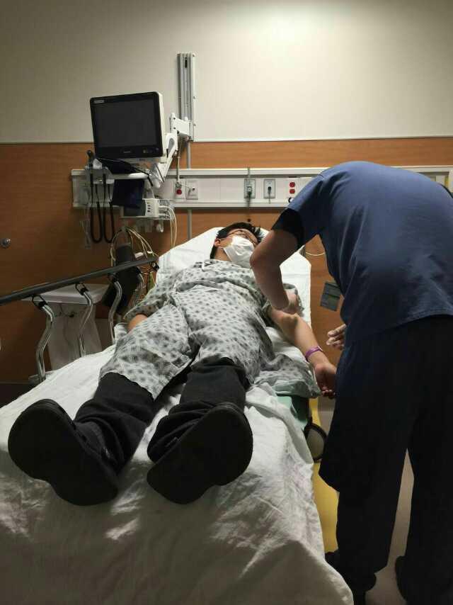 医院急诊室里条件还是不错的,可以躺躺,验血也是躺着让他们来