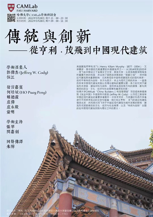 美国建筑师亨利·茂飞(Henry Killam Murphy,1877-1954),又译墨菲,是中国近代最重要的外国建筑师之一。从1914年到1935年,茂飞在中国设计了雅礼大学、清华学校、金陵女子大学和燕京大学等多所重要大学的校园,并主持了国民政府南京的“首都计划”,对中国近代建筑具有重要影响,尤其表现在中国传统建筑形式的现代转译。如何平衡传统与创新,东方与西方,本土与现代之间的关系,一直是百年来中国现代建筑实践以及理论建构的重要议题。各个时代对于建筑形式语言、建筑材料与结构、空间体系规划等方向的探索,都与其背后的政治、文化、经济与社会背景有着深刻关联。哈佛大学CAMLab“China Builders | 构筑理想国”项目组有幸邀请到《筑业中国》作者郭伟杰教授(Jeffrey W. Cody),以及伍江教授等中国近现代建筑史重要学者展开一次学术对话,力求通过东西方学者进行不同学术观点的交流与碰撞。我们将从亨利·茂飞的适应性建筑理念出发,共同探讨茂飞对于中国近现代建筑与城市发展的影响,探索建筑形式背后的文化、经济与社会背景,以及“传统与创新”议题在中国现代建筑实践与理论之中的意义。