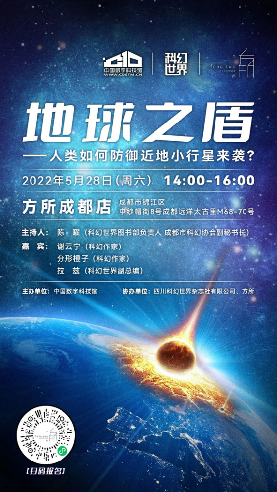 在近地小行星防御领域愈发受到业界关注之际,5月28日,4位嘉宾将从我国组建近地小行星防御系统这一事件出发,延展探讨科幻作品中的天文灾难带给我们的启示,以及人类如何科学应对、规避天文风险等议题。