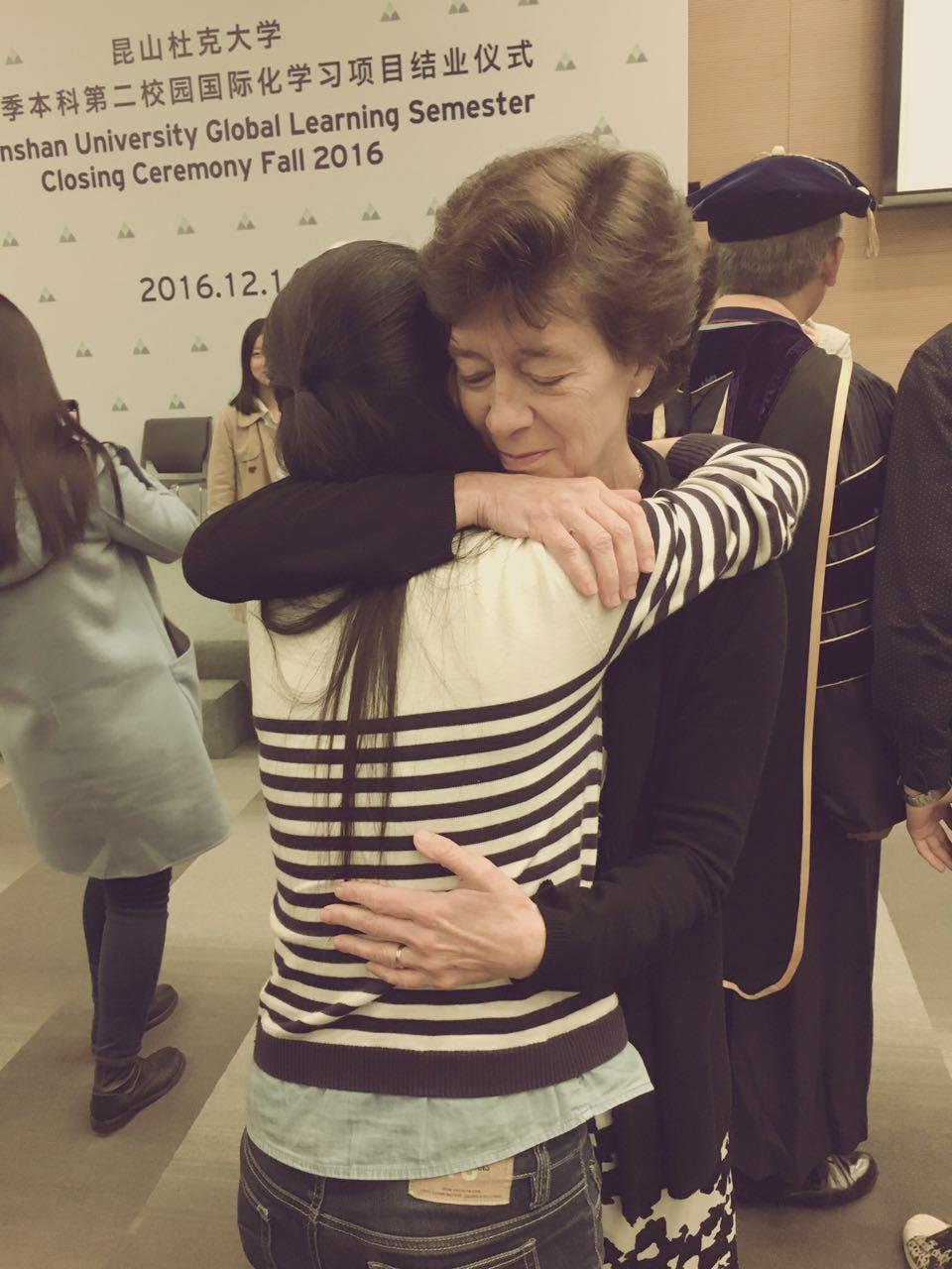 (临别前的拥抱——Linda是杜克的一名出色的图书管理员,也是我申请DKU时面试我的人)