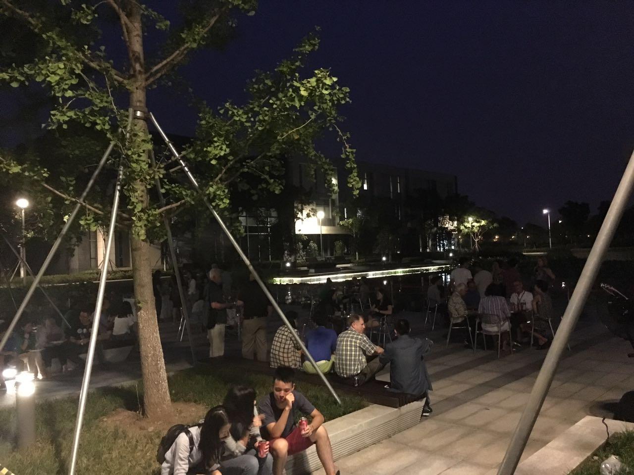 (凉爽的夏夜里,所有的老师、同学们就这样坐在一起,欢饮畅谈)