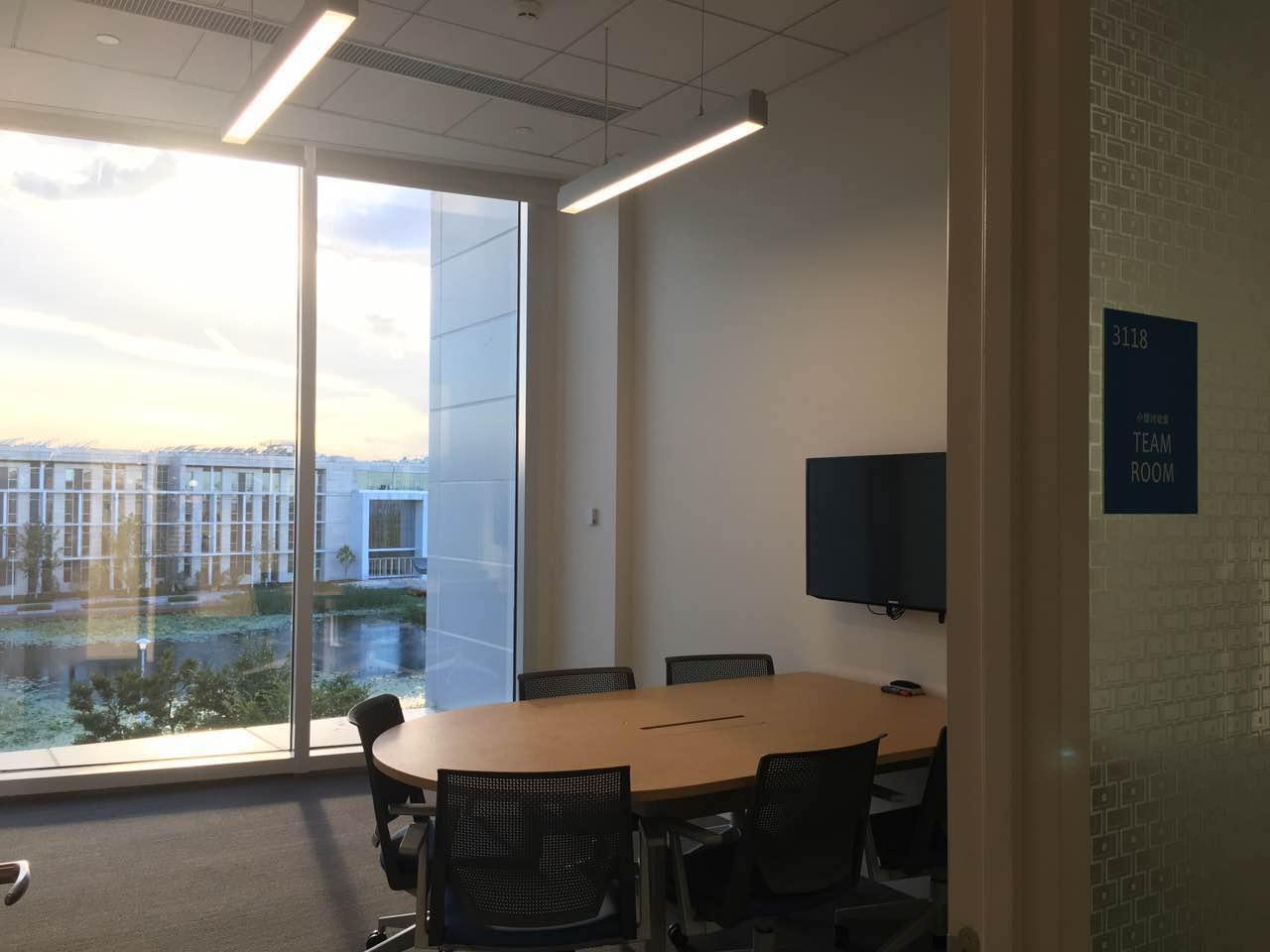DKU,坐落在昆山市郊,校园按照美国标准建造设计。不必说那现代化的教学楼,宽敞的学生宿舍,设施齐全的健身房;也不必说白鹭在湖面上悠然踱步,盛开的荷花倚在绿叶旁,金色的阳光透过高大的落地长窗。单是那无处不在的小组讨论室,就足以令人怀念。我在的那个学期,偌大的校园只有本科生加上研究生不足一百个学生,人均资源之丰富,可以用“奢侈”来形容。健身房从早上六点开到晚上十二点,一两个人包场的情形并不少见;学生宿舍中有很多房间专门用来进行打桌球、看电影等娱乐活动。当然,作为学生,最宝贵的就是那随处可见、设备齐全的“小组讨论室”——虽有“小组”之名,但由于“地广人稀”,一个人独占一间也毫不困难。每间讨论室,都配备着大白板和马克笔,还有硕大的电子显示屏以用于演示PPT等。当然,由于课程学习中十分强调小组合作,三五个同学在一间讨论室直到深夜也再常见不过。话不多说,上图为证。大多是我手机拍的原图哦~