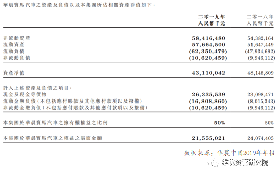 将华晨宝马在集团合并报表还原后,可得到集团2019年主要财务数据如下: