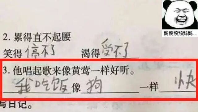 手机访问:wap.265xx.com有种“爆笑答案”叫小学生试卷,让娃仿词造句:我吃饭像狗一样快