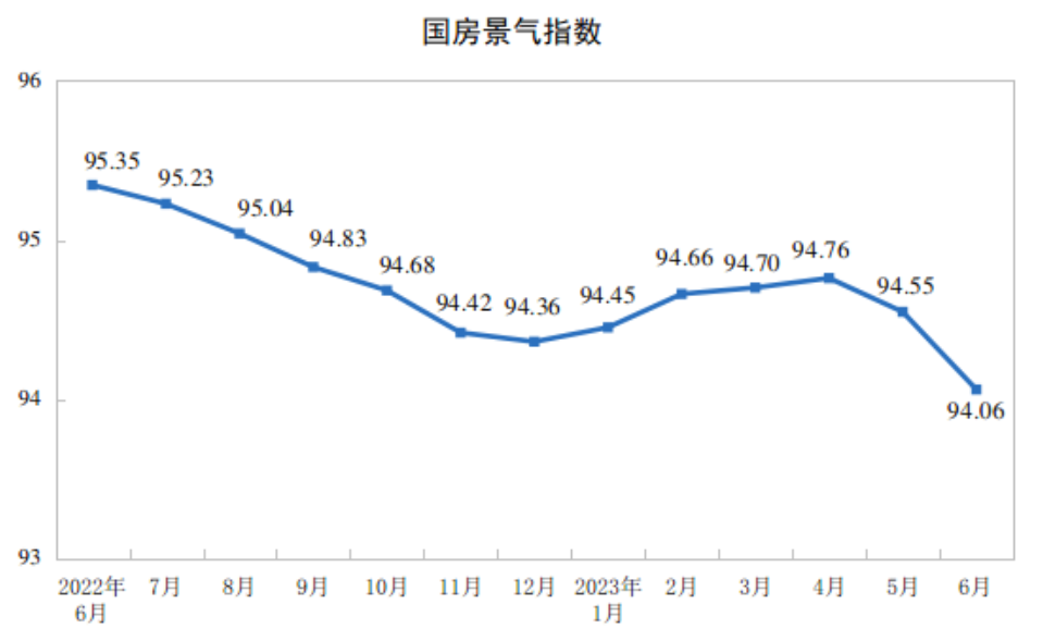 ●2023年6月份的「房地产开发景气指数」为94.06,是过去一年以来最低数值。
