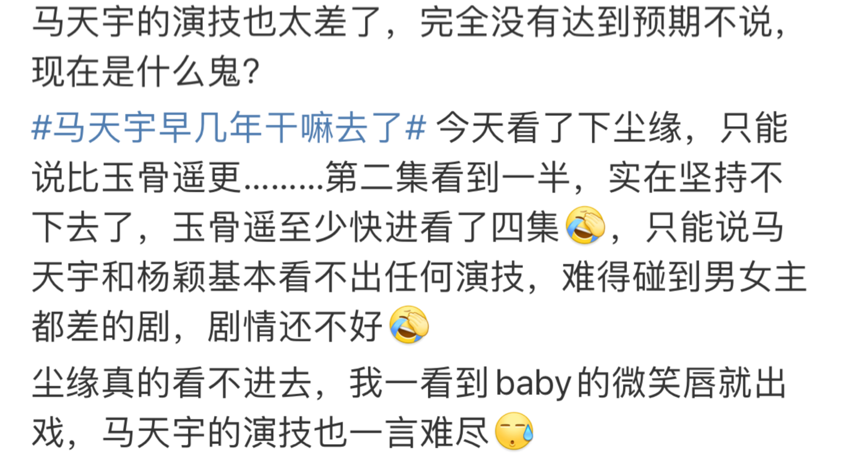 有网友表示“马天宇接不起来的剧没有太大意外,毕竟他之前很久没有作品,但就连任嘉伦都没扛起来的剧,真不怪别人”。