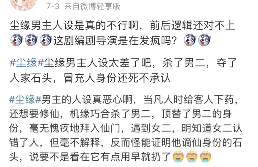 最后就是最主要的制作问题,《尘缘》的制作非常粗糙,根本看不出来导演和制作组是有水准,多巴胺脏乱风的画面,配上十分突兀的背景音乐,驴唇不对马嘴的配音还有五毛钱不能再多的特效,整个视觉感受就是满满的劣质。
