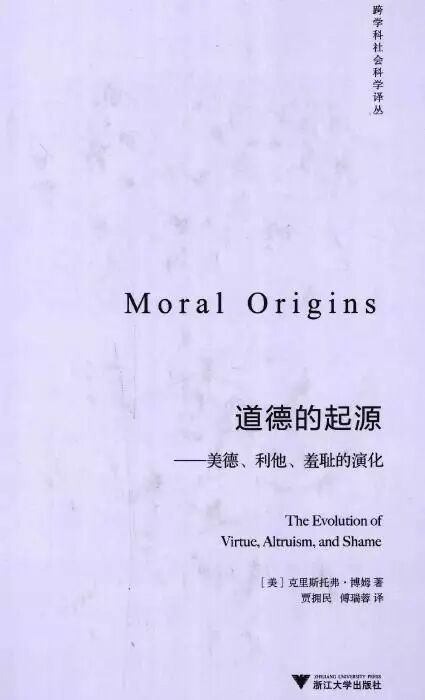 不久前,我读到一本有趣的书,《道德的起源:美德、利他、羞耻的演化》(Moral origins:the evolutiong of virtue, altruism, and shame,2012)。