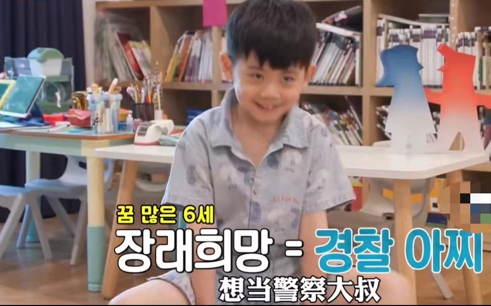 6岁的于大海面对镜头一点都不怯场,介绍了自己的中文名字和韩文名字,还表示自己以后想当警察叔叔。