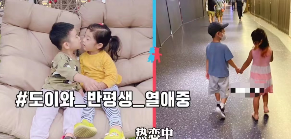 最可爱的是他还郑重其事地介绍了自己的幼儿园女友“不听话的金度伊”!还称她是“脚气大队长”,后期更是贴上了两人一起玩的照片,简直是热恋期情侣既视感,连演播厅嘉宾都感慨:挺真挚啊!