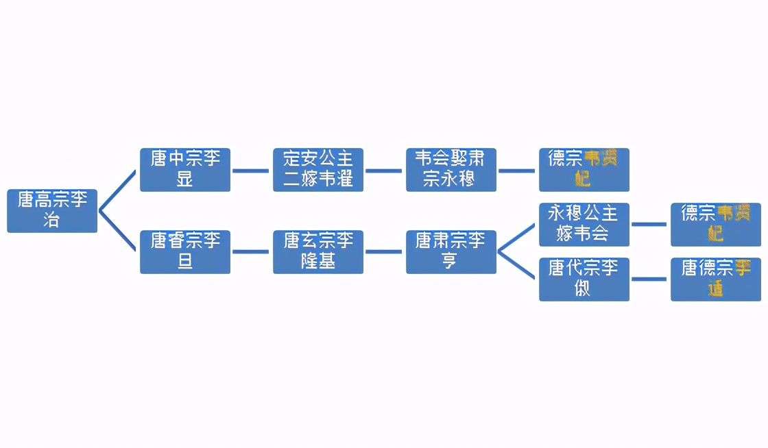 但是,要从韦贤妃的祖母、中宗闺女定安公主那里算,韦贤妃是定安的亲孙女,德宗李适则是定安的曾侄孙,所以,韦贤妃就是德宗的表姑,妥妥的姑侄婚。