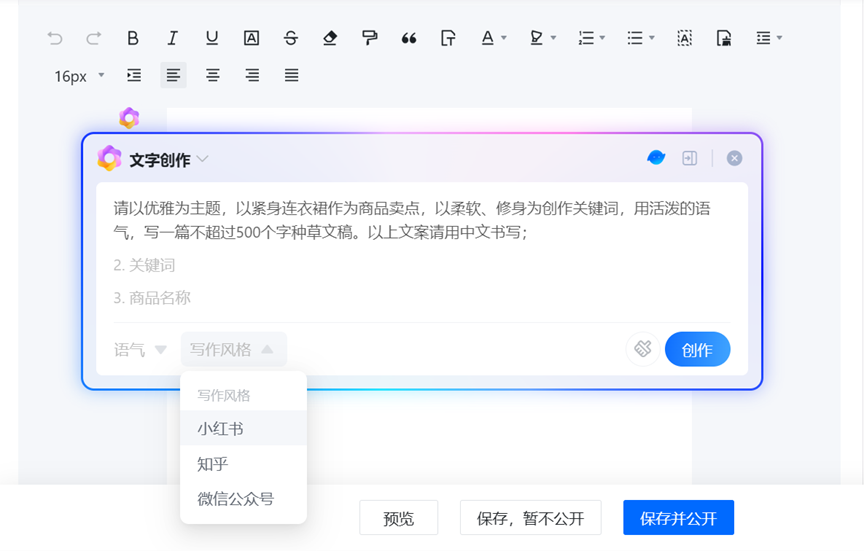 由于需求高频、生成内容的可用性高,口播和朋友圈文案写作是最早被商家认可的场景。对比之下,在公众号长文本写作等场景中,模型可能会生产出前后风格不统一的内容,难以被“丝滑”使用。此外,一些商家觉得现在大模型的写作能力还比不上自己的文案,会希望WAI生成的内容更符合自己的个性化风格。