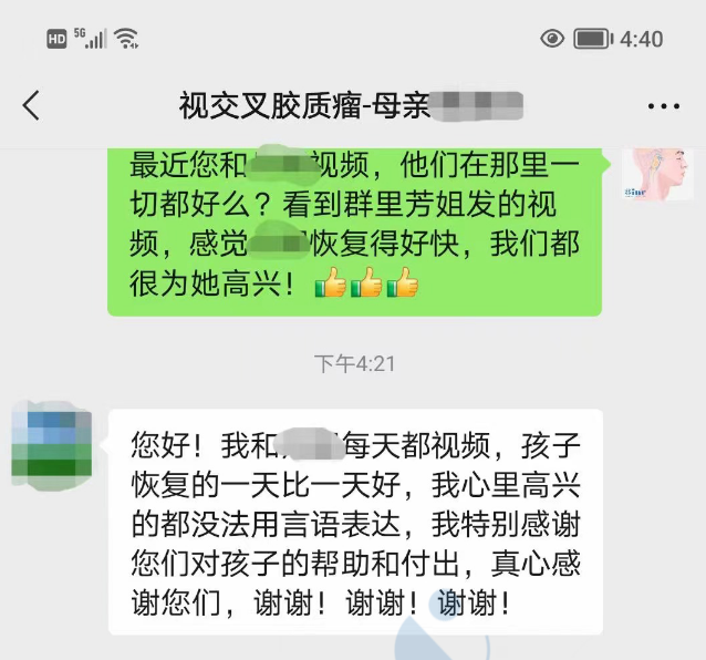 “我和孩子每天都视频,孩子恢复的一天比一天好,我心里高兴的都没法用言语表达,我特别感谢您们对孩子的帮助和付出,真心感谢您们,谢谢!谢谢!谢谢!"