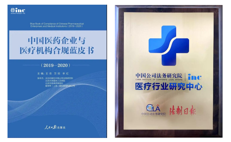 2021年7月,INC联合中国法务研究院等调研发布《中国医药企业与医疗机构合规蓝皮书(2019—2020)》,聚焦医药与医疗行业的合规“痛点”,出具了切实可行的合规意见。《蓝皮书》深入分析了医药与医疗行业合规“痛点”,并给出具有前瞻性、具体可行的合规意见,以期帮助市场相关人士合法合规、高效有序地展开相关业务。新华社新华网、人民日报、法制日报、央广网、光明网等国家级媒体均报道了该书的出版及重大意义。