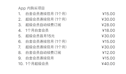 白金会员连续包月产品为每月 15 元,