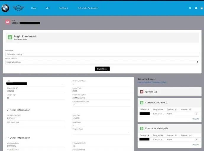 访问宝马门户网站上的车辆详细信息(资料来源:Sam Curry)
