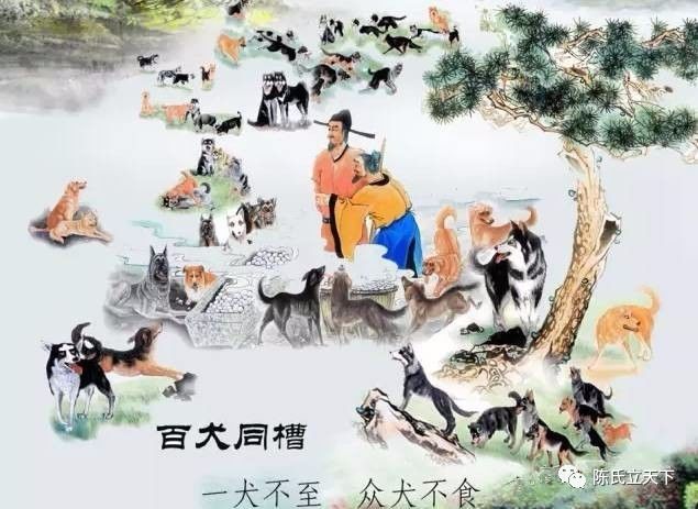 陈氏家族重义尚德,家风所及甚至教化了畜生,家中喂养了一百只狗,这些狗也是同食一槽,共眠一牢。