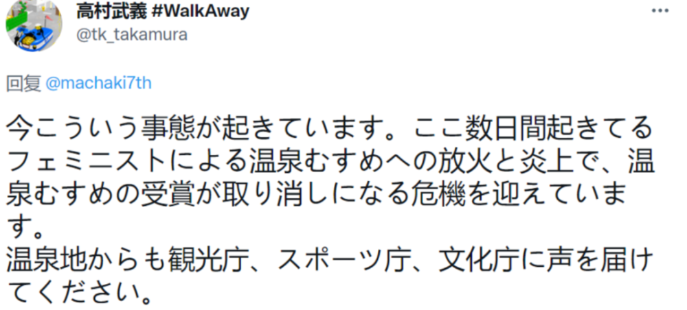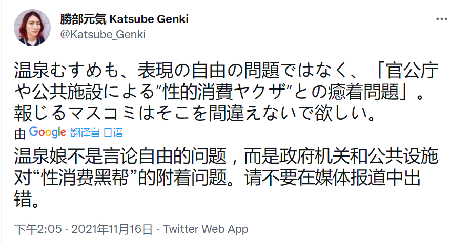 如此背景之下,也就出现了文章开头所说的网络暴力。反对者她们不再只局限于「温泉娘」企划,而是不惜用缺乏证据的指控,想要证明「温泉」这个行业本身,长期以来就存在着卖春的问题。