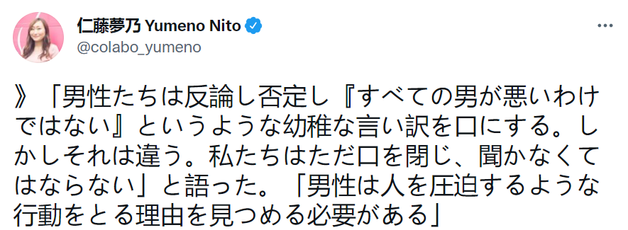 “不是一个男人有问题,而是所有男人都有问题。”