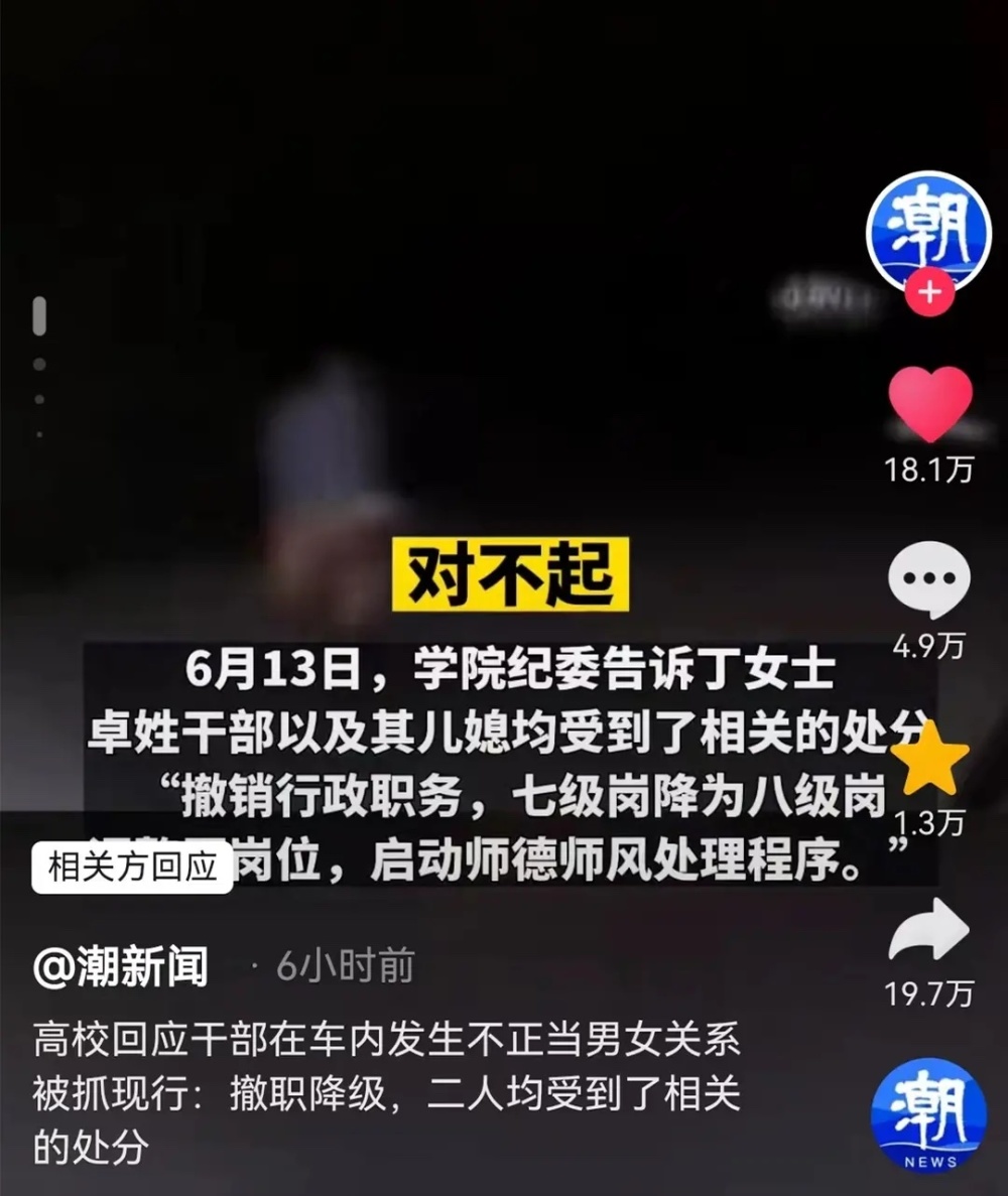近日,广东的张女士和卓处长在荒郊野外车震一事闹得沸沸扬扬,尤其是卓处长光着屁股奔跑,滑稽至极,事发后两人任职的学校也对二人做出了处罚,同时张女士和卓处长遭到了网友的批评。