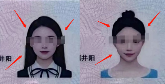 身份证照片周围有被液化的痕迹,户口本也在细节处有偏差。
