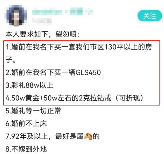 要车、要房、要彩礼、要钻戒,满打满算加起来就是500万上下。