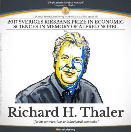 就在笔者写到这里的时候,传来了诺贝尔经济学奖的最新消息:积极倡导和推动通过“Choice Architecture”设计来影响公共政策的行为科学家、芝加哥大学的Richard.H.Thaler教授,同时也是刚刚提到的《Nudge》一书的作者,独自获得了2017年度的诺贝尔经济学奖。