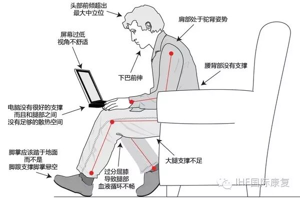 如何改善骨盆前倾?纠正坐姿长期错误的坐姿会导致骨盆前倾和耸肩。由于工作原因需要长期低头伏案工作的人群,常有如下的错误坐姿。