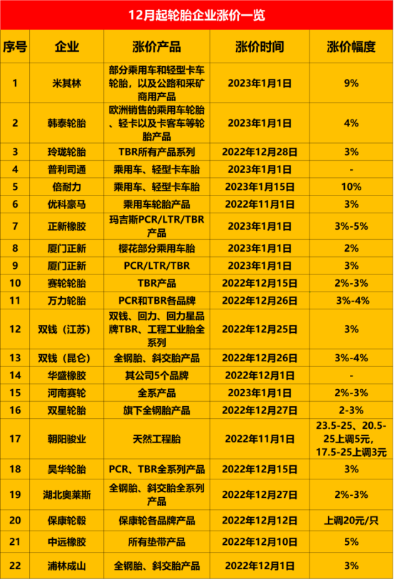 3、超30家轮胎企业发布涨价函 需求回暖行业利润或持续修复