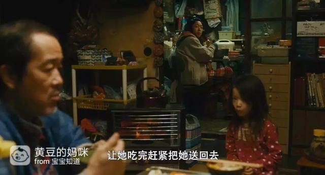 被送回去,看到她亲生家庭里的状态,安藤樱饰演的妈妈和莉莉弗兰克饰演的爸爸又带了回来。