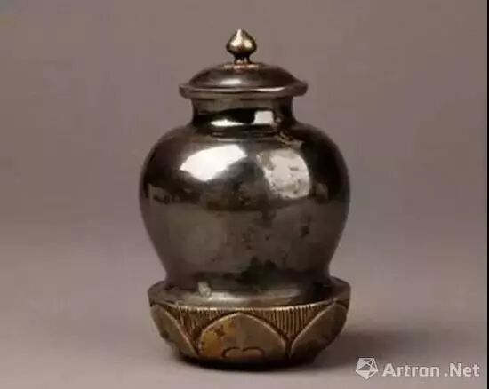 唐 银仰莲瓣座罐