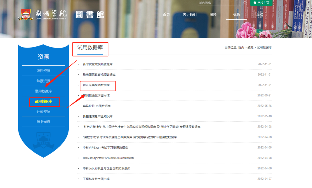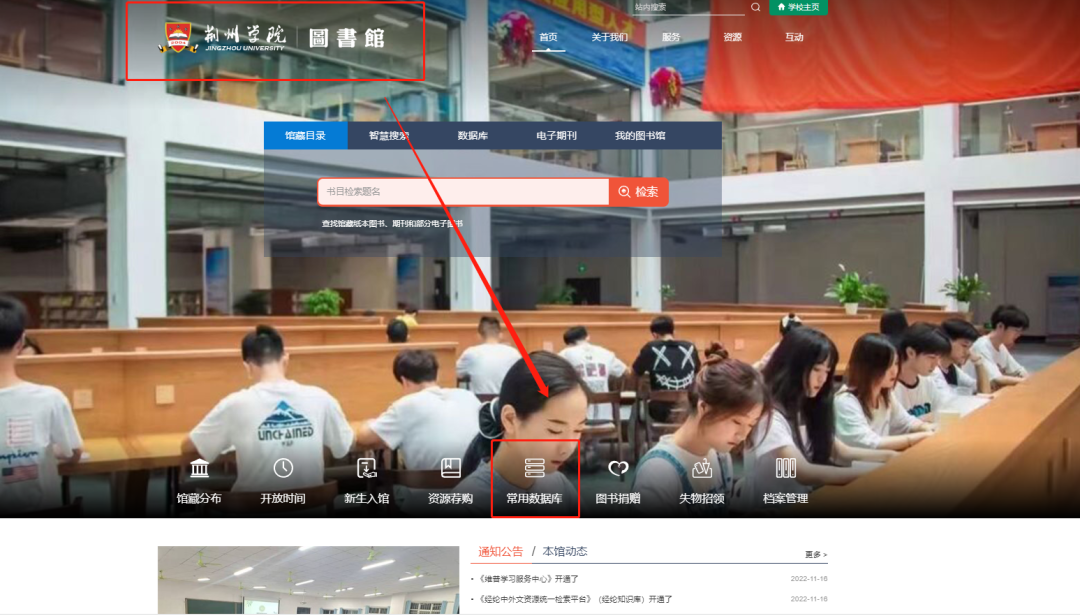 1.打开荆州学院图书馆官网https://www.jzxy.net.cn/library/中找到常用数据库