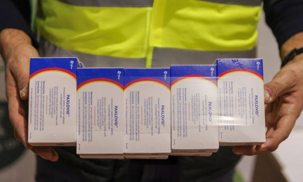 当地时间2022年1月18日,以色列Shoham,仓库内的美国辉瑞公司抗新冠病毒口服药物Paxlovid。图片来源:视觉中国