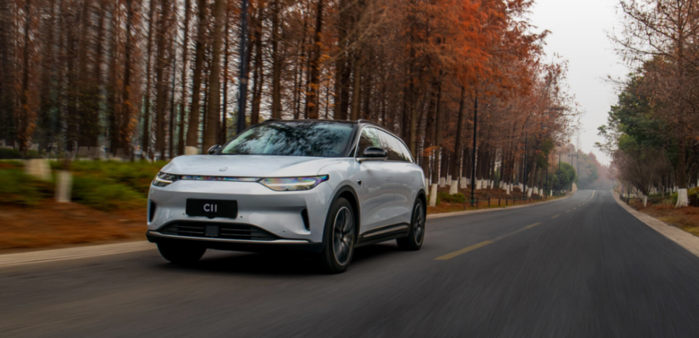 零跑C11是基于零跑C架构下的首款车型,定位为纯电动中型SUV,其风阻系数仅为0.282Cd。性能版车型采用四驱布局,配备两个最大功率200kW,最大扭矩360N·m的电机,其0-100km/h加速成绩4.8秒,拥有90kWh电池,能够为该车带来550km的NEDC续航里程。
