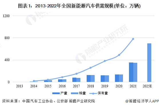 近年来,世界主要汽车大国纷纷加强新能源汽车战略谋划、强化政策支持、完善产业布局,新能源汽车已成为全球汽车产业转型发展的主要方向和促进世界经济持续增长的重要引擎。2021年,全国新能源汽车实现产量354.5万辆,销量352.1万辆。截至2021年底,全国新能源汽车保有量达784万辆,累计消费约1.6万亿元,带动上下游产业链产值约4.8万亿元。由国家工业和信息化部于2020年发布的《新能源汽车产业发展规划(2021—2035年)》指出,到2025年,纯电动乘用车新车平均电耗降至12.0千瓦时/百公里,新能源汽车新车销售量达到汽车新车销售总量的20%左右,高度自动驾驶汽车实现限定区域和特定场景商业化应用,充换电服务便利性显著提高。
