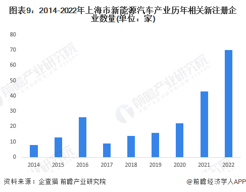 根据企查猫查询数据显示,上海市近年来新能源汽车产业新注册企业数量也处于稳定增长的状态。截至2022年9月初,上海新能源汽车产业相关的注册企业超400家;2022年新注册企业数量已超过70家,大于2021年总的企业注册数量,表明上海市新能源汽车产业发展依旧保持迅猛的状态。