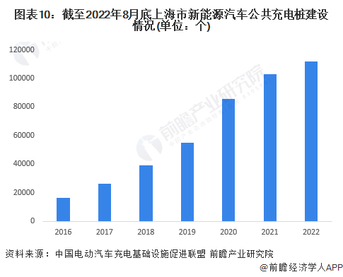 上海市新能源汽车产业的高速发展离不开充电设备行业的进步。2016-2021年,上海市新能源汽车充电桩数量保持稳步增长的态势。截至2022年8月底,上海市累计建设公共充电桩112149台。