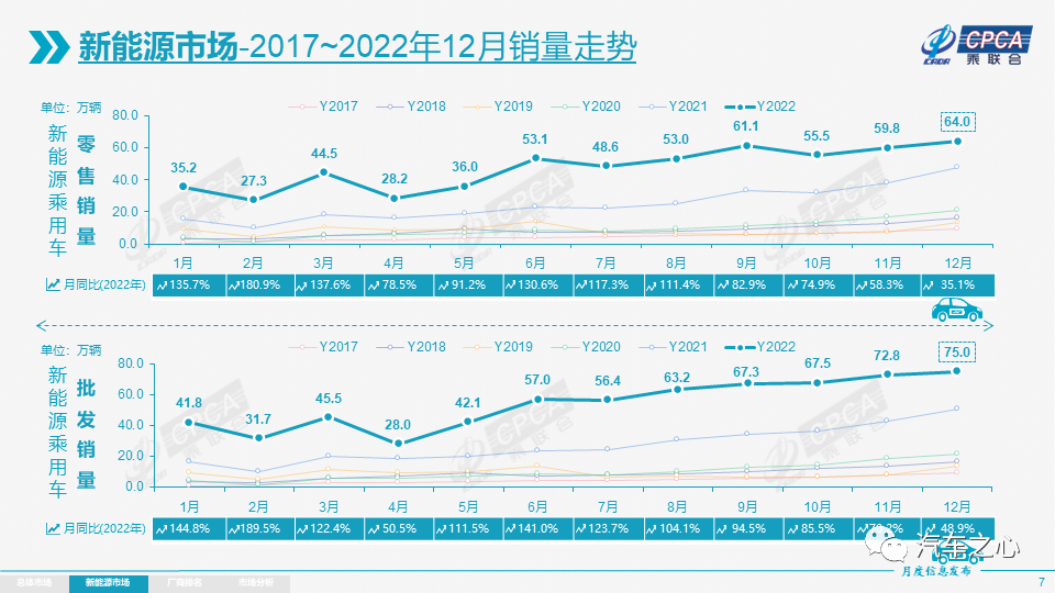 从乘联会的官方数据来看,2022 年是新能源汽车「翻倍式增长」的一年。