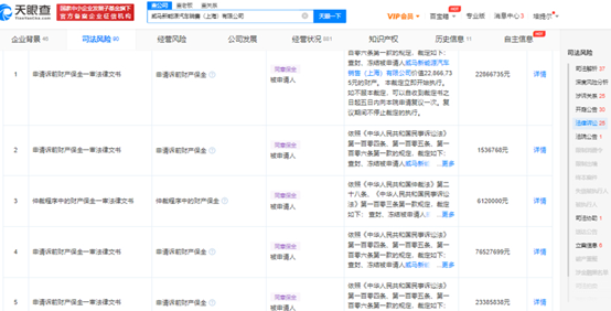 威马新能源汽车销售(上海)有限公司新增5个财产保全裁定书, 图片来源:天眼查App