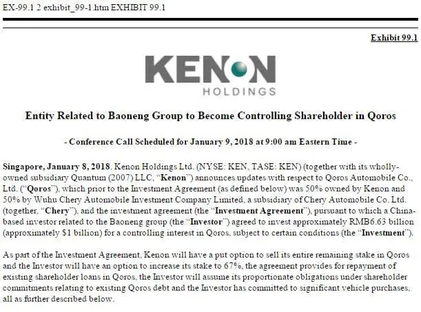 2017年12月,宝能集团以66.3亿元收购奇瑞旗下观致汽车51%的股权,两年后又出资15.6亿元增持至63%,并承诺在未来5年每年投入 100亿元用于新车研发,预计2022年观致汽车将推出26款新车型。