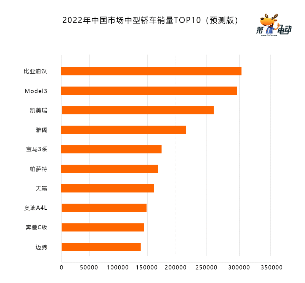 不出意外的话,2022年全年销量榜前十名,会变成这样:电动双雄(Model 3、汉)+合资五霸(凯美瑞、雅阁、帕萨特、迈腾、天籁)+BBA三杰(宝马3系、奔驰C级、奥迪A4L)。亚洲龙大概率会跌出前十。