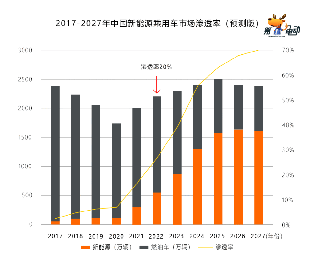 2022年的新能源汽车渗透率,类似于2010年的智能手机渗透率。现在,是否有理由预期:未来五年,中国新能源乘用车市场渗透率由现在的22.9%,快速跳升至70%?见证奇迹的时刻,就要来了。