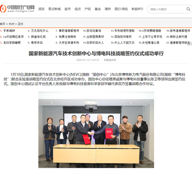 1月10日,国家新能源汽车技术创新中心(NEVC)(简称“国创中心”)与北京博电新力电气股份有限公司(简称“博电科技”)联合实验室战略签约仪式在北京经开区成功举办。国创中心总经理原诚寅与博电科技董事长陈卫等领导出席签约仪式。国创中心测试认证平台负责人张俊超与博电科技首席科学家邱宇峰代表双方签署战略合作协议。