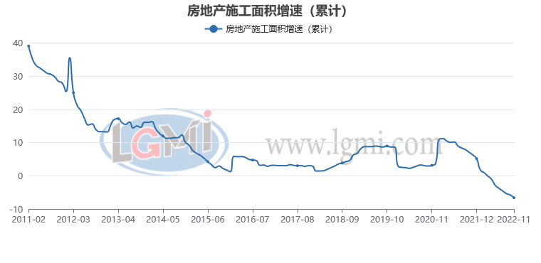 2022年全年对于房地产行业利好不断,但中央经济工作会议上定调,仍坚持“房住不炒”,现阶段房地产行业调控主要是防止房价过快下跌而形成系统性风险。2022年房地产调控主要集中在解除限贷限购,保交楼及政策性住房,主要是解决房地产开发端资金问题,现在抵押端暂时无有效措施,业主购房意愿还是不足,从而导致房地产施工面积、投资完成额及新开工面积均有下滑。