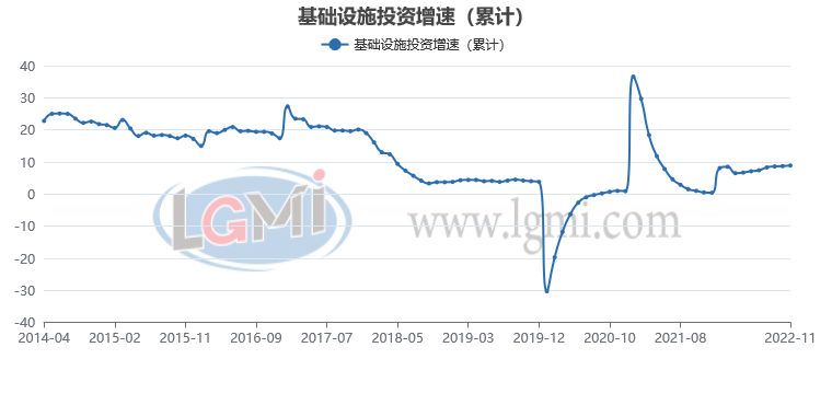从政策导向看,2023年的政策重点将转向恢复和扩大消费,投资尤其是基建投资的稳增长作用将有所淡化。中央经济工作会议指出,“通过政府投资和政策激励有效带动全社会投资,加快实施‘十四五’重大工程,加强区域间基础设施联通,政策性金融要加大对符合国家发展规划重大项目的融资支持。因此,预计2023年基建投资增速将保持一定的韧性,由于上年基数偏高,增速或维持在6-8%左右。