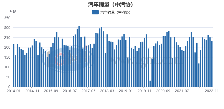 据中国汽车工业协会统计数据显示,2022年1-11月,汽车产销分别完成2462.8万辆和2430.2万辆(详见图8、图9),同比分别增长6.1%和3.3%,累计增速放缓,较1-10月分别收窄1.8和1.3个百分点。其中,乘用车产销分别完成2170.2万辆和2129.2万辆,同比分别增长14.7%和11.5%,累计增速放缓;商用车产销分别完成292.7万辆和301万辆,同比分别下降31.9%和32.1%,继续呈现两位数下滑;;新能源汽车产销分别完成625.3万辆和606.7万辆,同比均增长1倍。